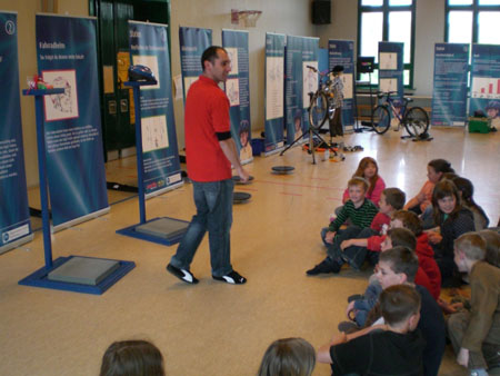 Am 10. Mai 2007 gab es für die 3. und 4. Klassen die Aktion “Helm auf”. In der Turnhalle wurde zur Veranschaulichung des Themas Unfallprävention eine kindgerechte und interaktive Ausstellung aufgebaut. Der engagierte Moderator suchte Kontakt zu den Kindern und vermittelte ihnen, wie ein Fahrradhelm schützen kann und wie gefährlich es werden kann, mit Kopfhörern Fahrrad zu fahren.