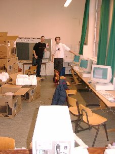 Mit viel Glück und dem vorliegenden Konzept der Schule konnte die Firma Sci-worx im September 2000 gewonnen werden, der Schule ein komplettes internetfähiges Netzwerk (10 PCs inklusive neuen 17″-Monitoren) zu spenden. Die Aufarbeitung der PCs und die komplette Installation wurde von Auszubildenden der Firma, die selbst erst ca. 4 Monate dort arbeiten, vorgenommen. Im Januar wurde das Netzwerk aufgebaut und um noch 4 weitere bereits vorhandene PCs ergänzt. Nochmals herzlichen Dank an den Vorstand der Firma Sci-worx und besonders dem ständigen Ansprechpartner Herrn Öllerer.